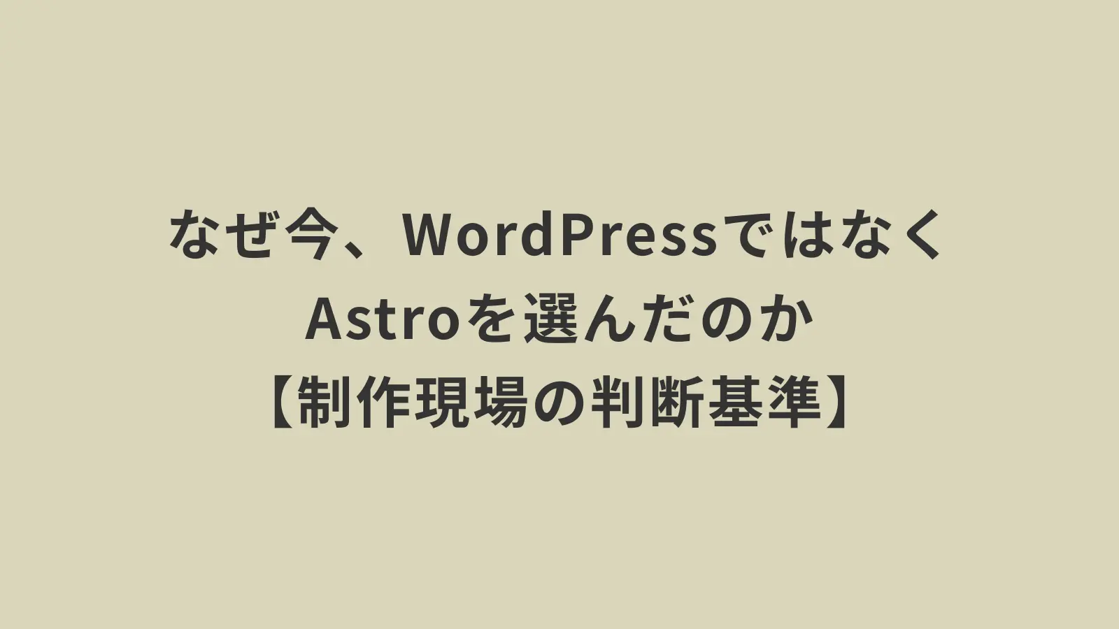 なぜ今、WordPressではなくAstroを選んだのか【制作現場の判断基準】